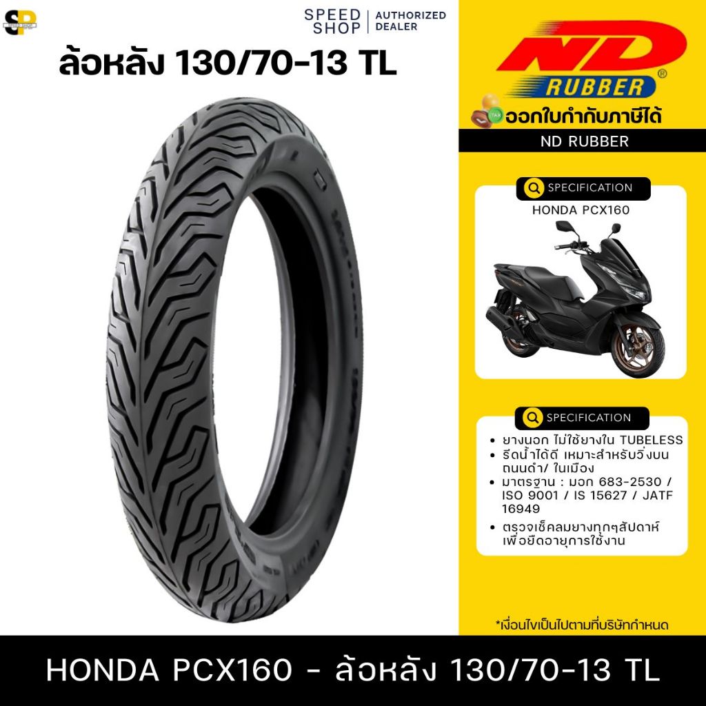ยางนอก PCX160 ล้อหน้า110/70-14 ล้อหลัง130/70-13 ND City ยางผลิตใหม่ทุกเส้น รับประกันคุณภาพ มี มอก.