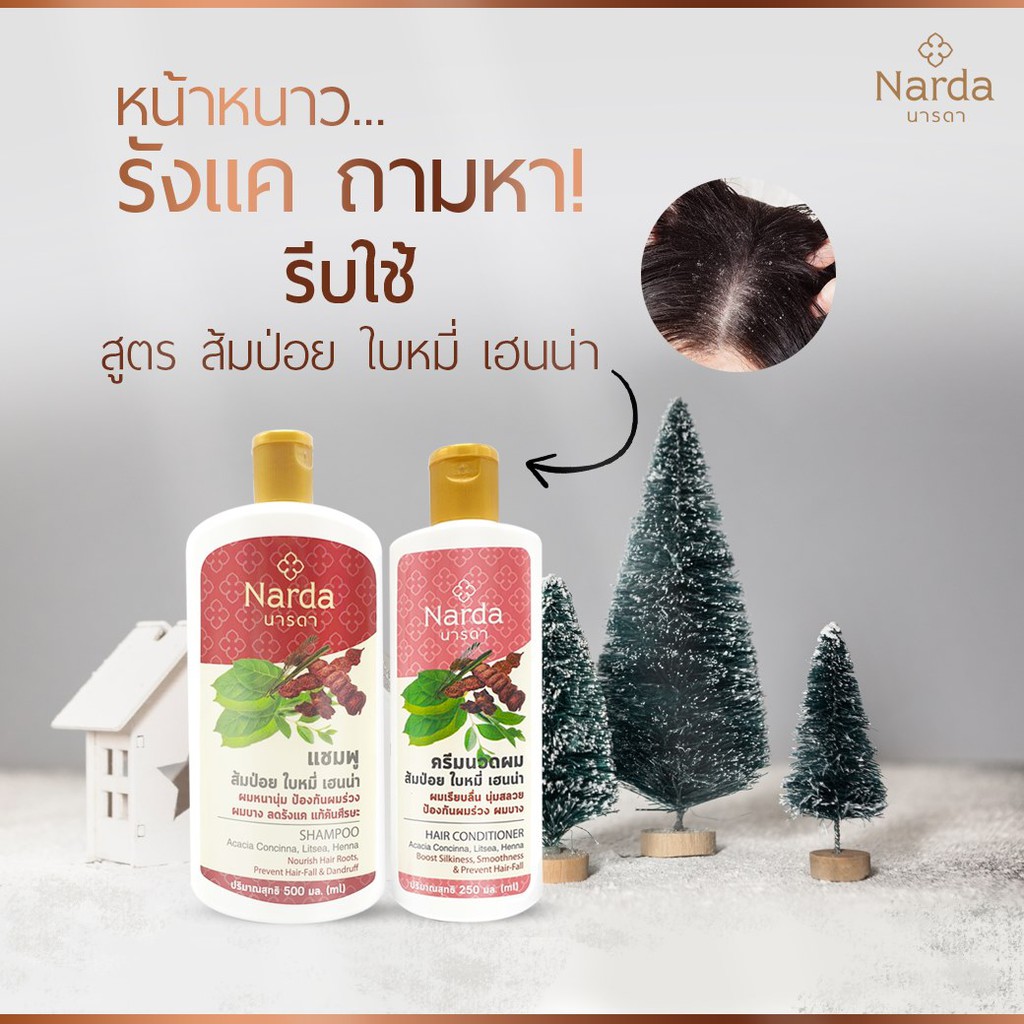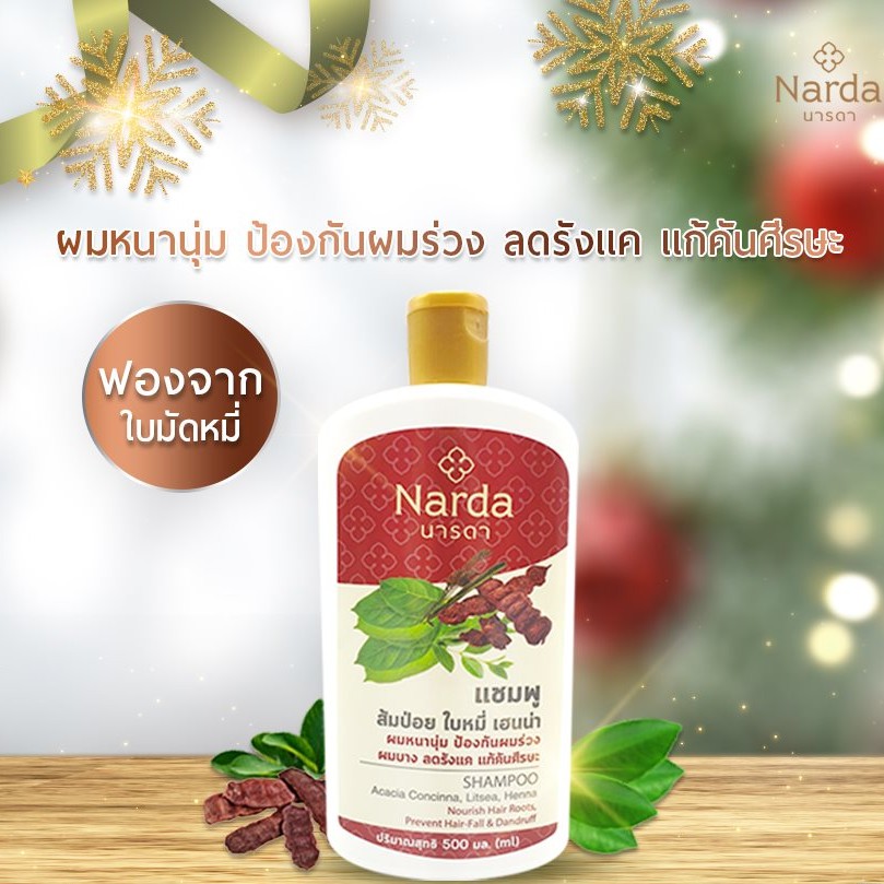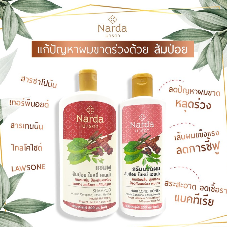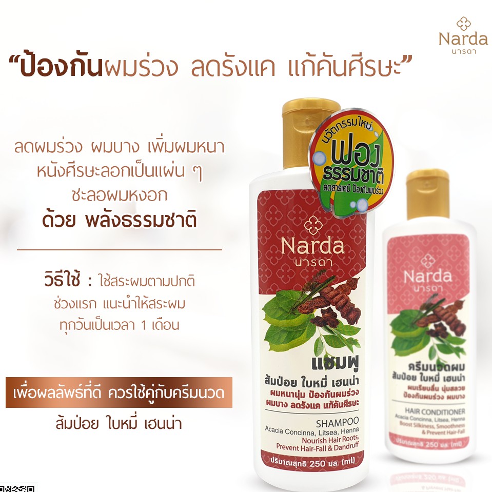 นารดา แชมพู/ครีมนวด ส้มป่อย Acacia Concinna,Litsea ลดการหลุดร่วง ป้องกันผมบาง แก้คันศีรษะ Narda