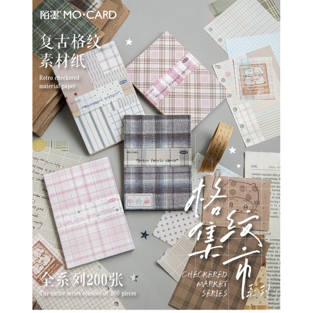 [พร้อมส่ง] กระดาษลายตารางDIY 50 แผ่น ลายตารางแบบเรโทร กระดาษตกแต่งสไตล์เรโทร