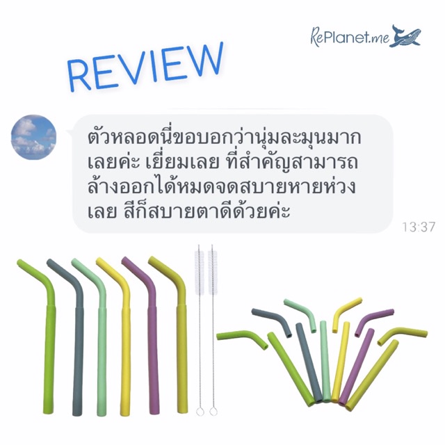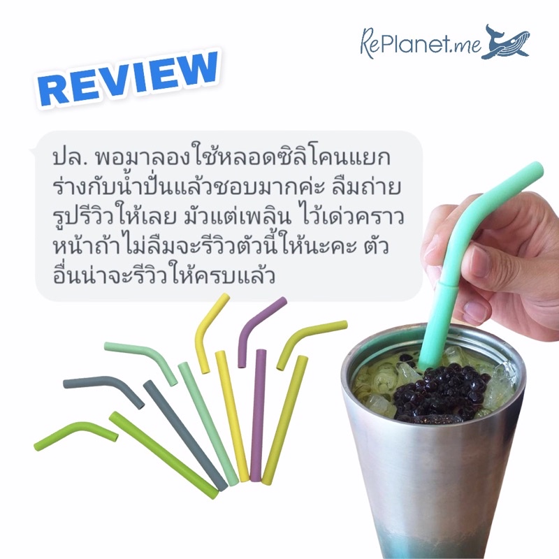 หลอดซิลิโคนแยกร่างได้ ฟรี! ถุงผ้าใส่หลอด || Silicone Straws (Straight & Bendy 2-Part Straws) Free! Straw Pouch