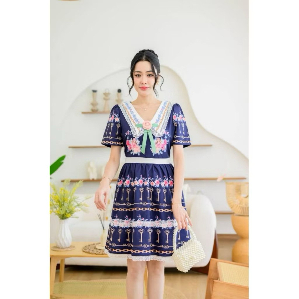 (M,L,3Xl)ราคาโปร✅เดรสสั้นพิมพ์ลายสวยป้าย Ananya