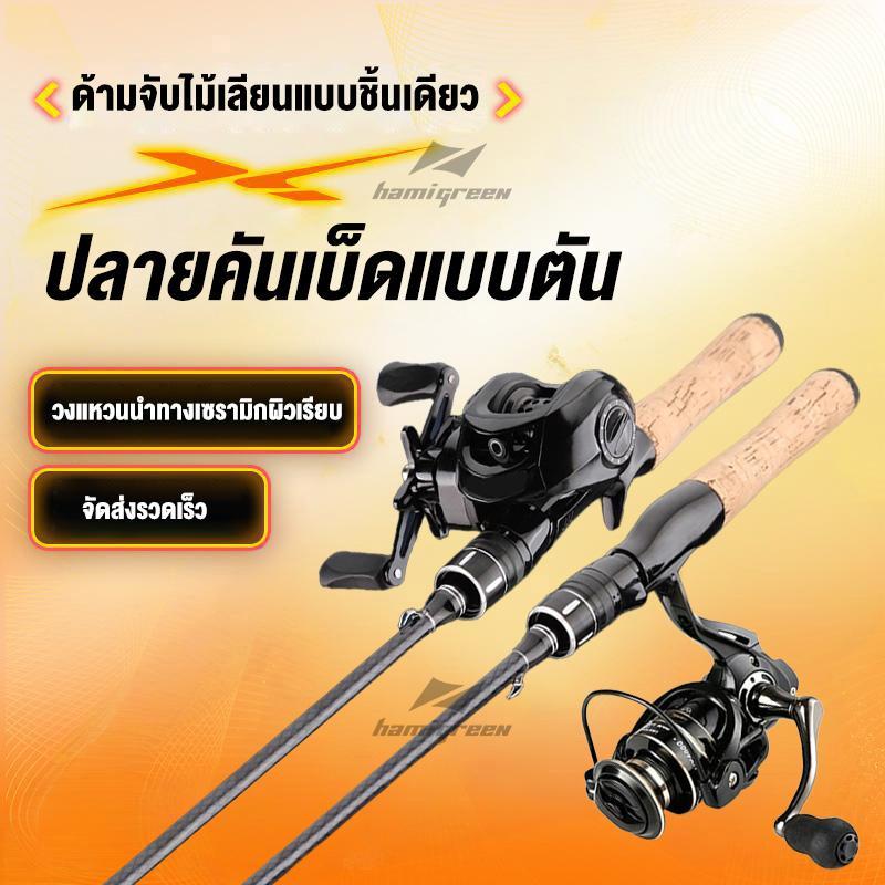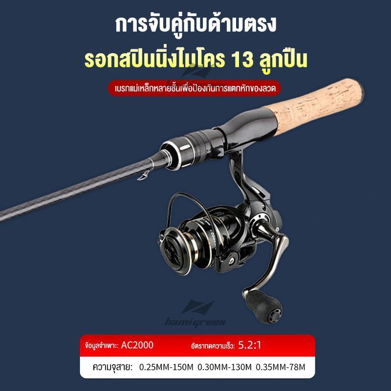 Hamigreen ชุดคันเบ็ดตกปลา เบ็ดตกปลาครบชุด ชุดรอกตกปลา คันเบ็ดคาร์บอน 5ft/6ft/7ft ครบชุด คันเบ็ดตกปลา รอกโลหะ AC2000