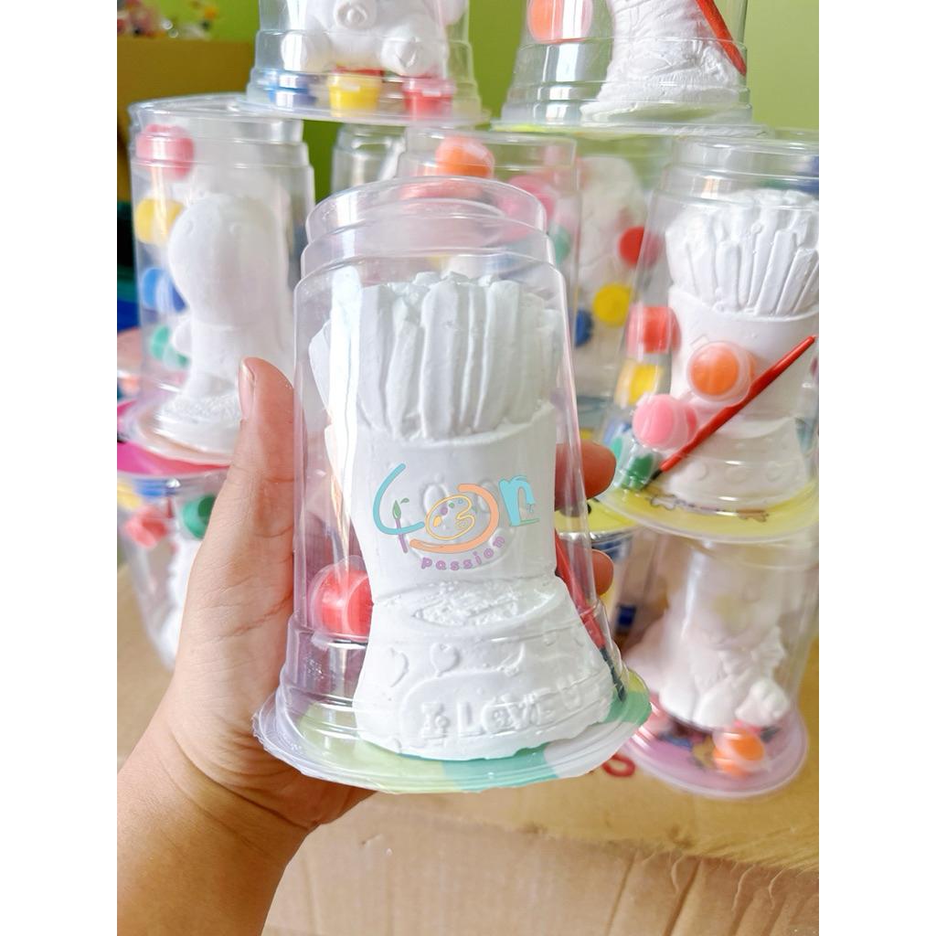 ปูนปั้น ตุ๊กตาระบายสีปูนปลาสเตอร์ ยี่ห้อ4Passion แถม6สี +พู่กัน <แบบแก้ว>