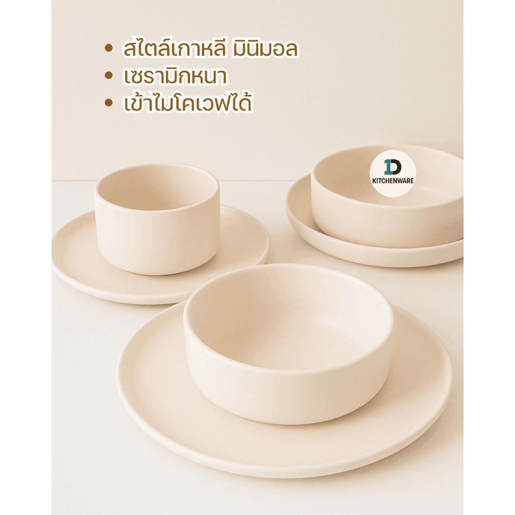 3003-(สีครีม) ชุดจานสีครีมเกาหลี ขนาด3.5-11นิ้ว