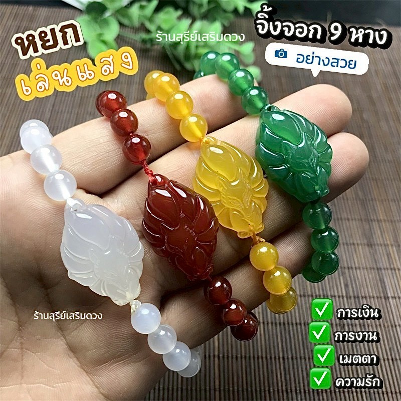 กำไลข้อมือ ✅หยกแท้⛩️ #จิ้งจอกเก้าหาง วัดหวังต้าเซียน 🦊 (ผ่านพิธี) จิ้งจอก 9 หาง 9 Tail วัดหวังต้าเซียน ซินแสแนะนำ หยก