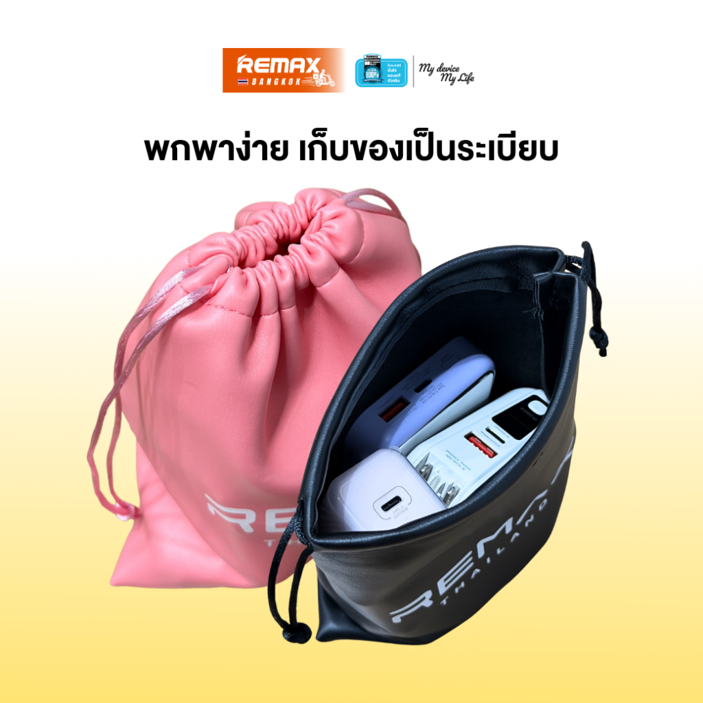 Remax Gadget Bag ถุงผ้าหนัง PU ป้องกันรอย กันฝุ่น กันน้ำ พกพาสะดวก สำหรับพาวเวอร์แบงค์ มือถือ หูฟัง