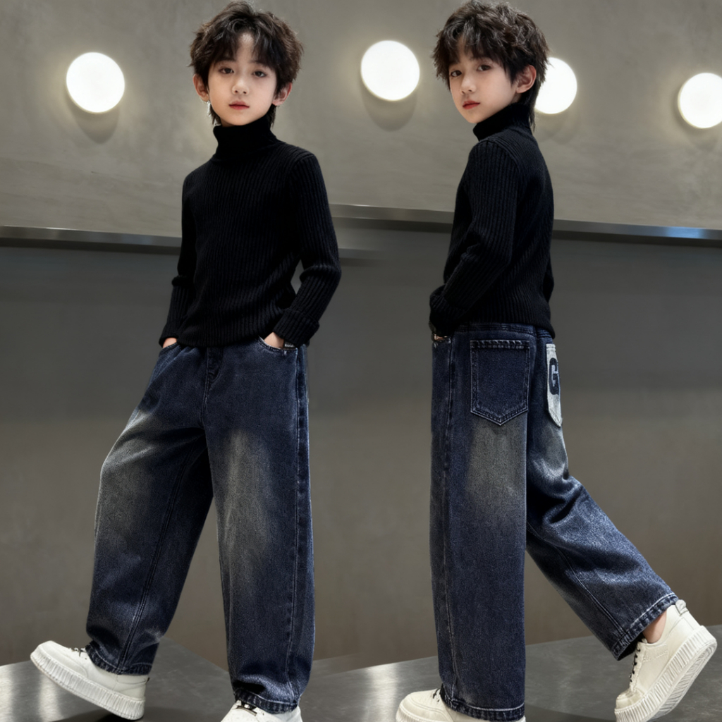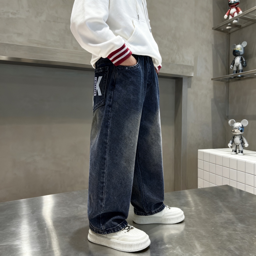 กางเกงยีนส์สำหรับเด็กผู้ชาย รุ่นใหม่ ผลิตจากผ้ายีนส์คุณภาพดี เลือกได้ทั้งสีเข้มและสีอ่อน ดีไซน์กว้างสบายพร้อมลายพิมพ์แฟชั่น ใส่สบาย เหมาะสำหรับเด็กผู้ชายใส่ในทุกๆ วัน