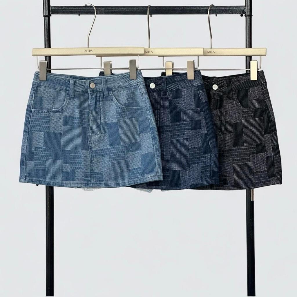 Atipashop - Ligne Denim Skirt (#ATP601) กระโปรงสั้นยีนส์ลายสก็อตตาราง