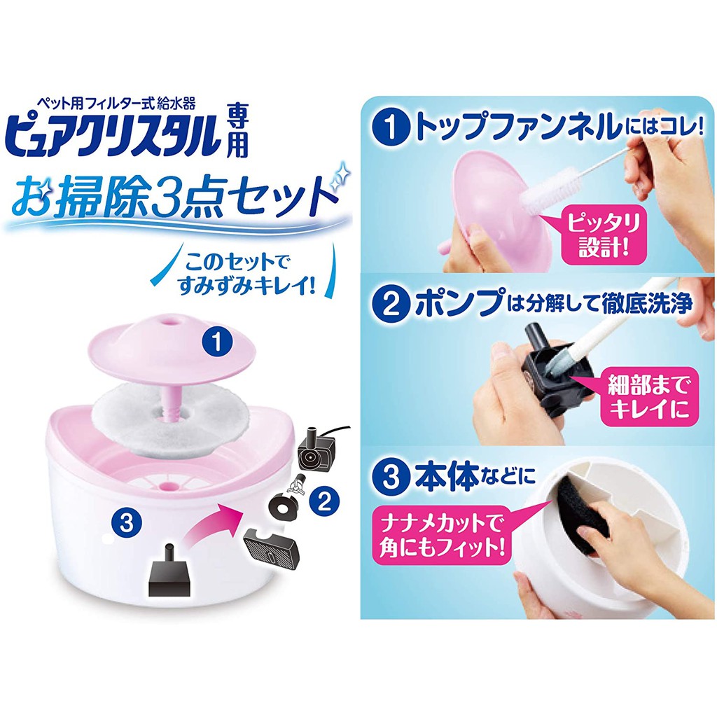 GEX แปรงทำความสะอาด 3 แบบ สำหรับทำความสะอาดที่ให้น้ำ ชามน้ำพุหรือชามน้ำทั่วไป