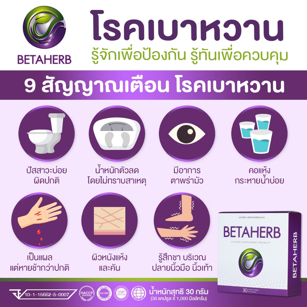 ผลิตภัณฑ์เสริมอาหารเบต้าเฮิร์บ (BETA HERB) ผลิตภัณฑ์คุมน้ำตาล ดูแลเบาหวาน | 4 กล่อง
