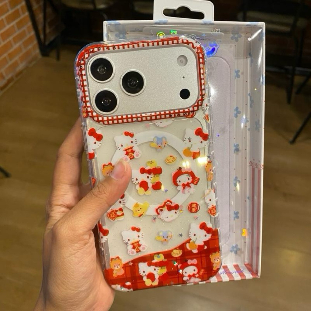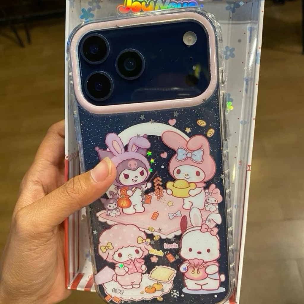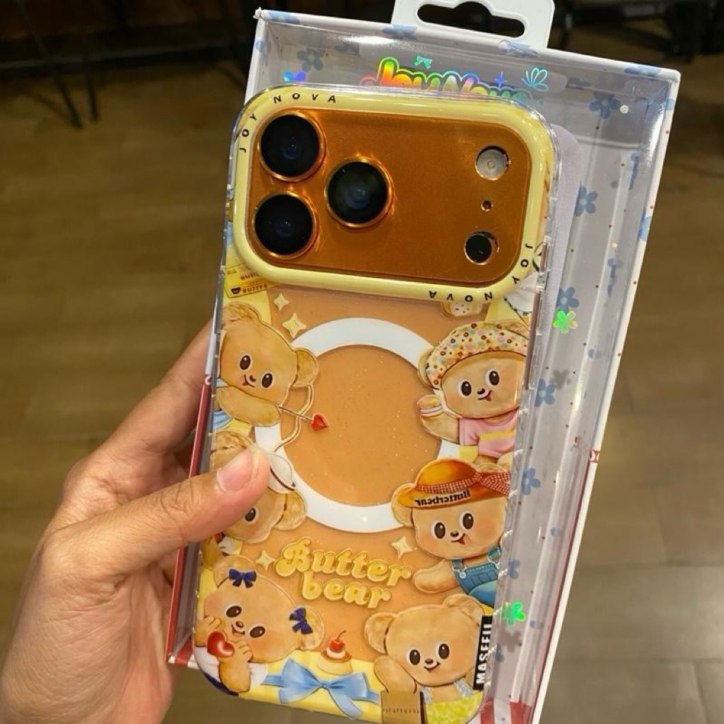 เคสอะครีลิคใสสกรีนลาย มีที่ชาร์จไรสาย ขอบนิ่มหลังแข็ง งานเงา ขอบหัวใจใส ปุ่ม Camera control ปิด