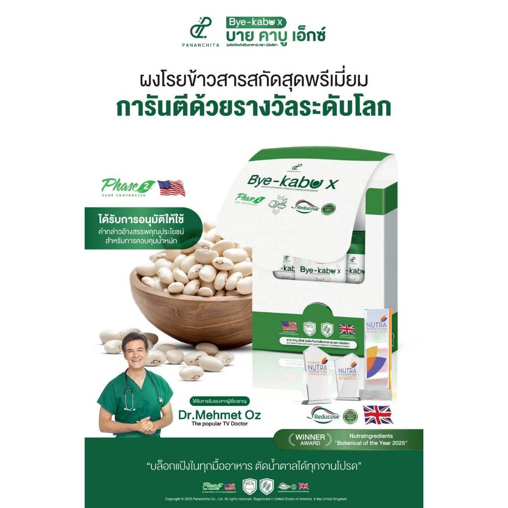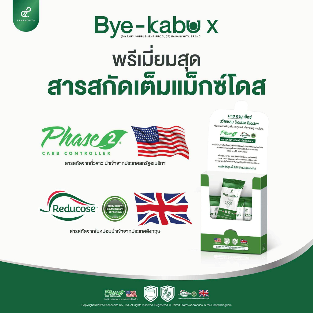 โปร 3กล่อง Bye kabu x บาย คาบู เอ็กซ์ อาหารเสริม ปนันชิตา ผงโรยข้าว ตัวตัดแป้ง