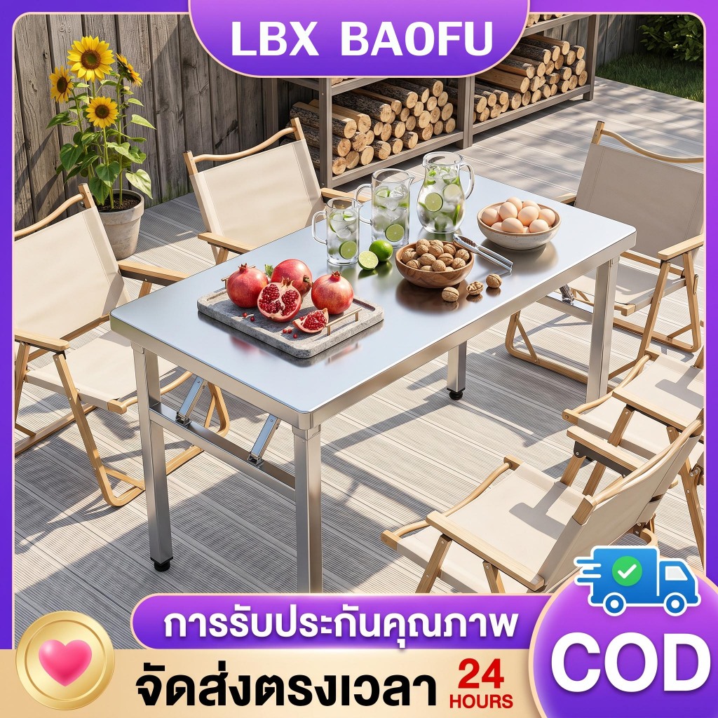 [304 เกรดอาหาร] ไม่เป็นสนิม โต๊ะอาหาร โต๊ะพับสแตนเลส สแตนเลส โต๊ะอาหาร โต๊ะพับ โต๊ะทานอาหาร โต๊ะครัว อเนกประสงค์โต๊ะยาว