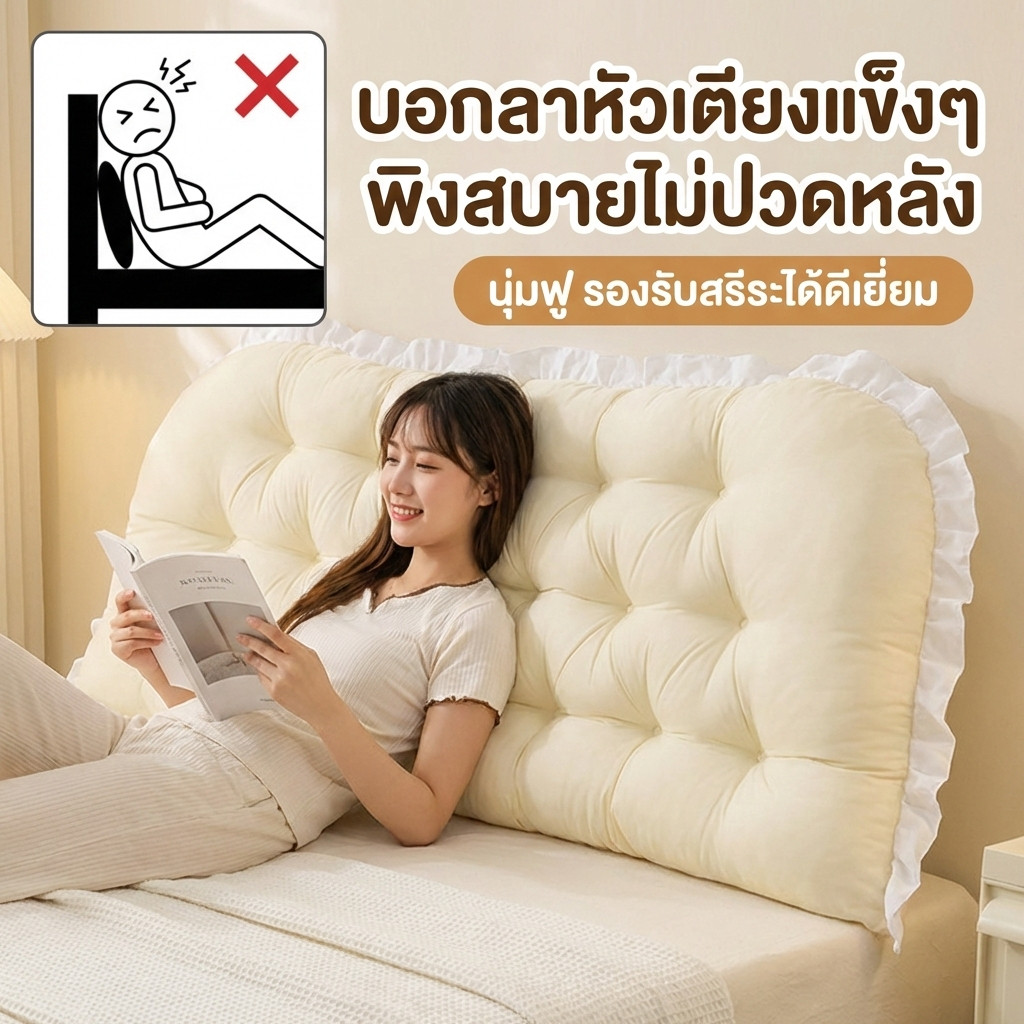LULUNA หมอนหัวเตียง นั่งสบาย สามารถถอดซักได้ หมอนเจ้าหญิง ผ้ากำมะหยี่ ดีไซต์สวย COD
