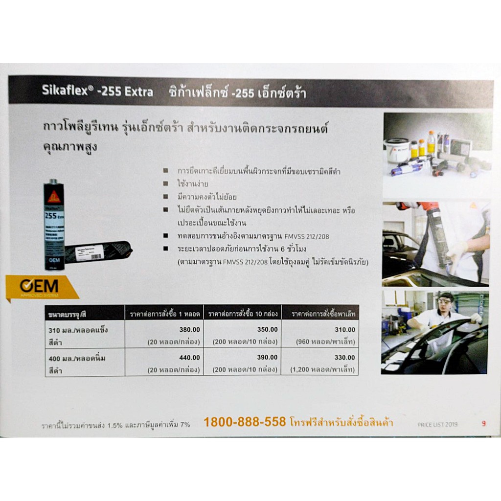 SikaFlex Ultra/Extra 255 ซิก้ากาวซิลิโคนติดกระจกรถยนต์ สีดำหลอดแข็ง 310 มล. หลอดนิ่ม 400 มล. (1 หลอด)