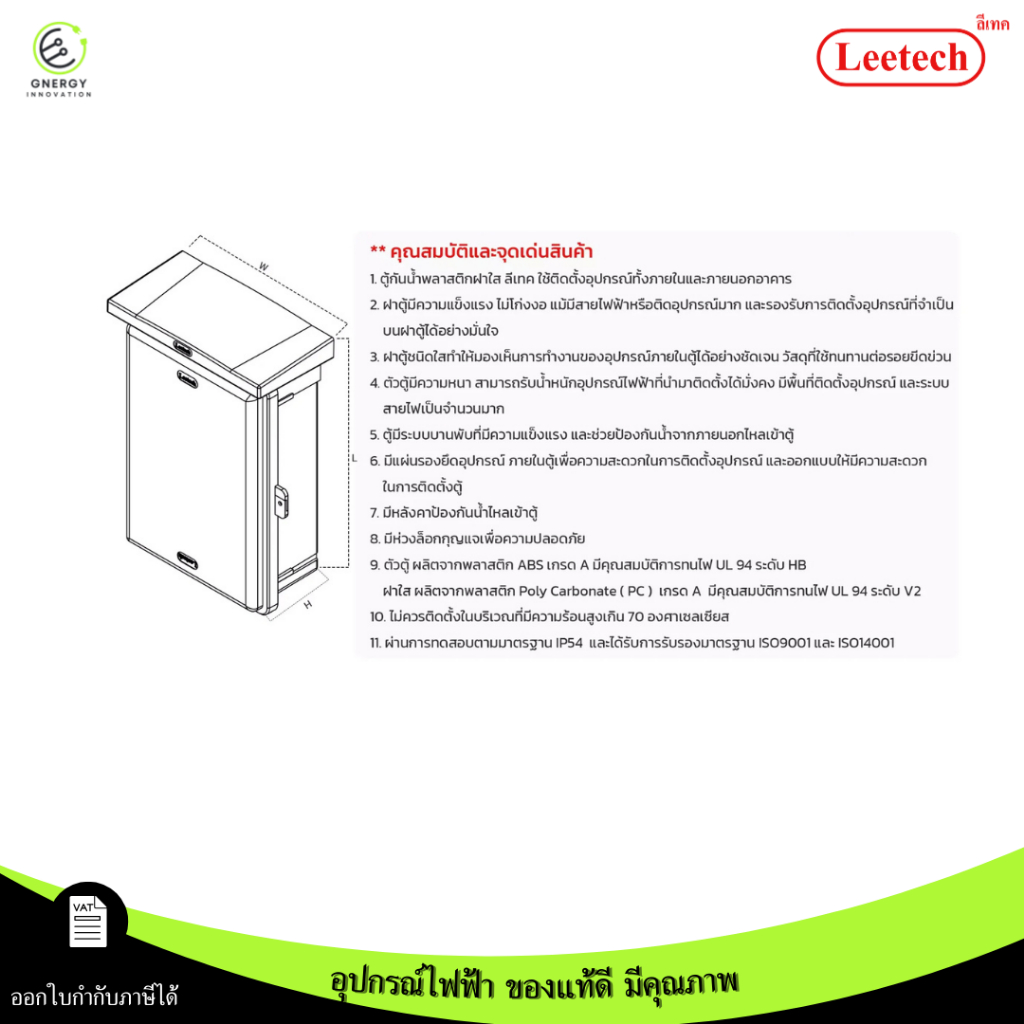 (ฝาใส) Leetech ตู้พลาสติกกันน้ำ พลาสติก ABS ขาว/เทา/ดำ IP54 แบบมีหลังคา ป้องกันน้ำไหล