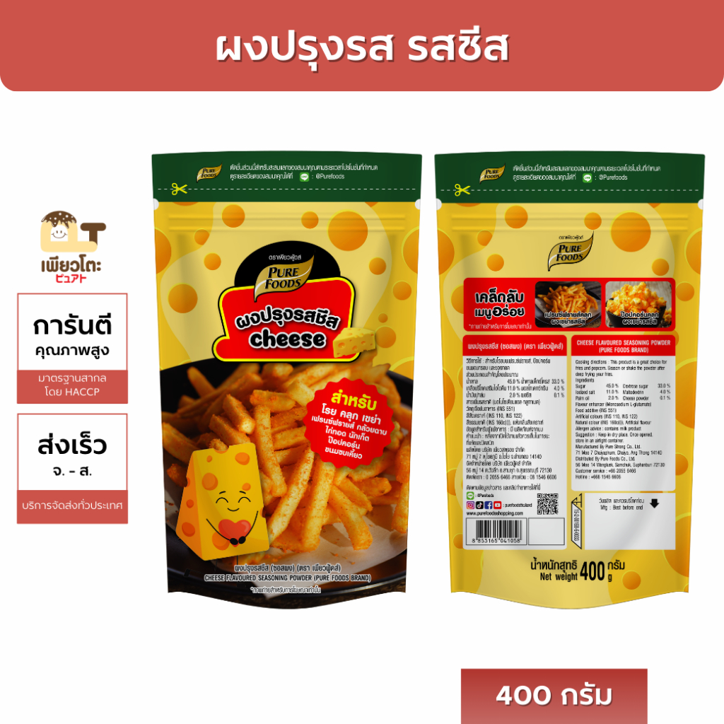 ผงเขย่า เพียวฟู้ดส์ 400กรัม ผงปรุงรสวิงแซ่บ ผงปรุงรสชีสบาร์บิคิว ผงปรุงรสชีส ผงปรุงรสปาปริก้า ออกใบกำกับได้มีปลายทาง