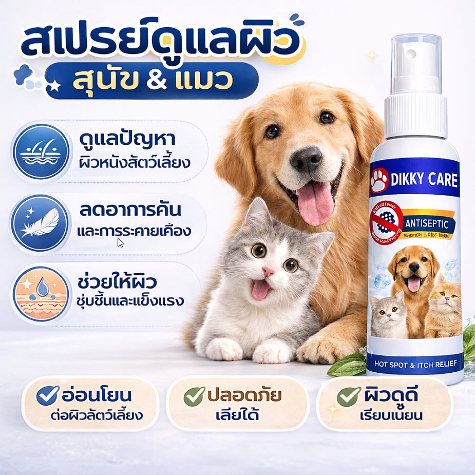 DIKKY CARE สเปรย์ดูแลผิวหมาแมว หมาคัน แมวคัน ขี้เรื้อน เชื้อรา