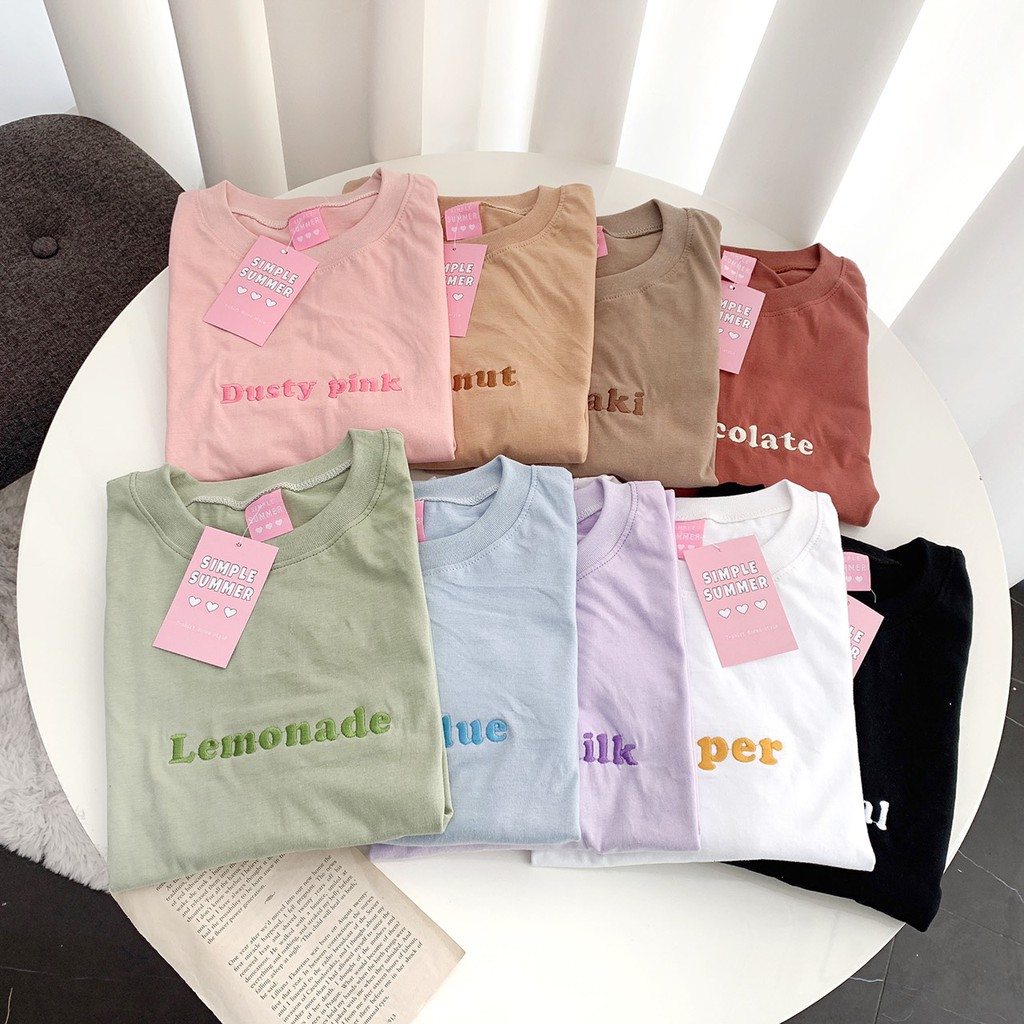 S317 เสื้อยืด oversize ผ้าคอตตอน ปัก Charcoal Paper Lemonade Pale blue Taro milk Chocolate Khaki Peanut Dusty pink