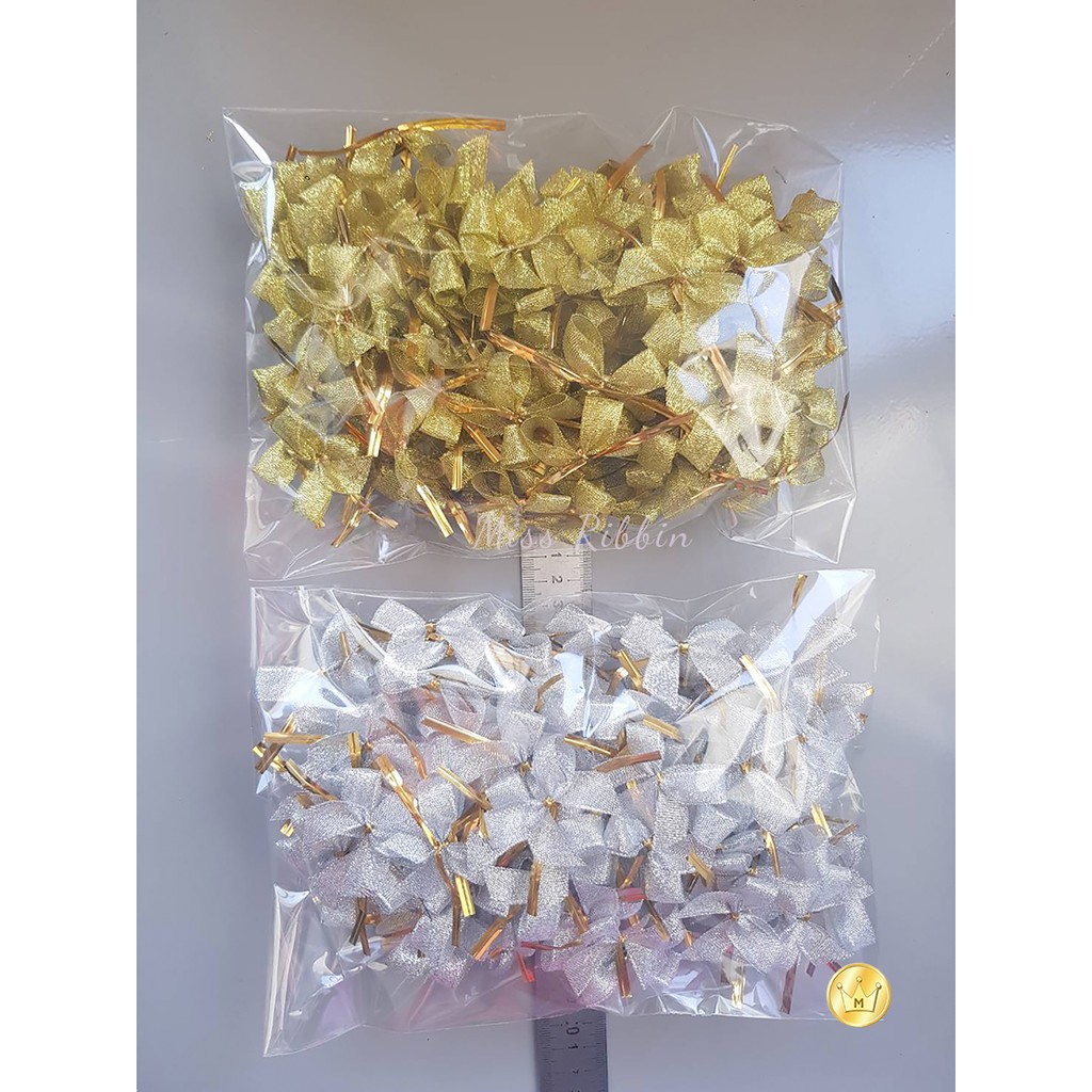 โบว์จิ๋วมัดลวดทราย 13มม (100ชิ้น) สีเงิน สีทอง