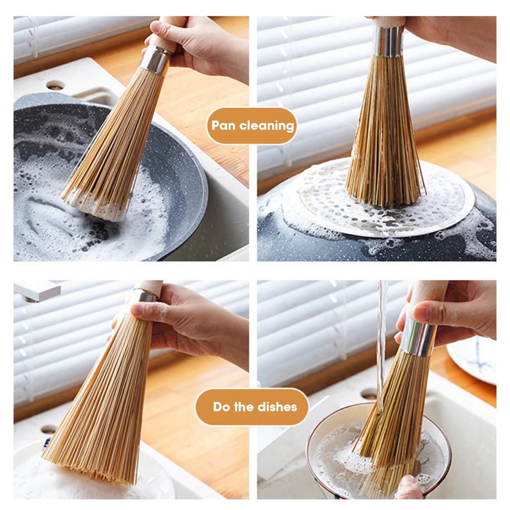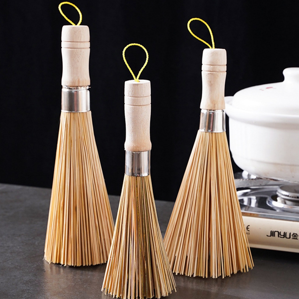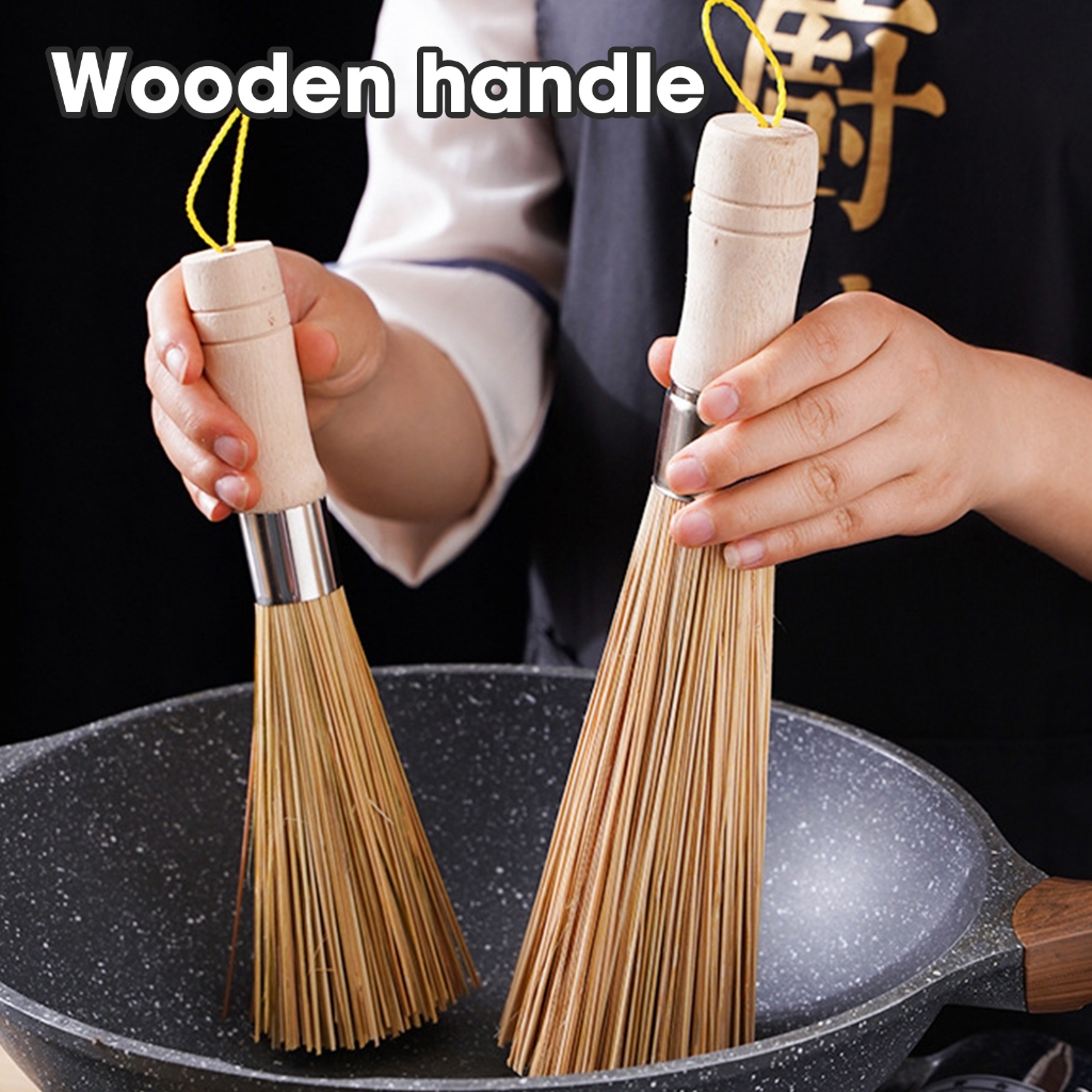 แปรงไม้ไผ่ แปรงขัดกระทะ วัสดุไม้ไผ่สด ไม้ไผ่ ล้างหม้อ ล้างกระทะ ด้ามไม้หนาจับถนัดมือ มันจะไม่ทำให้สารเคลือบเสียหาย