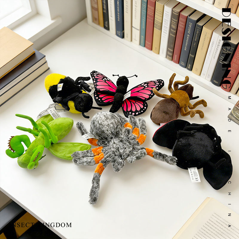 ของเล่นตุ๊กตาแมลง 6 ชนิด Spider Mantis Ant ผีเสื้อ Bee Ladybug คอลเลกชันการศึกษา