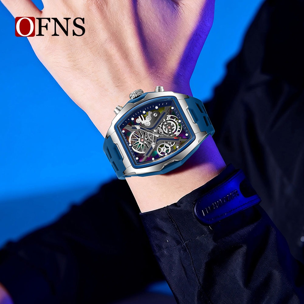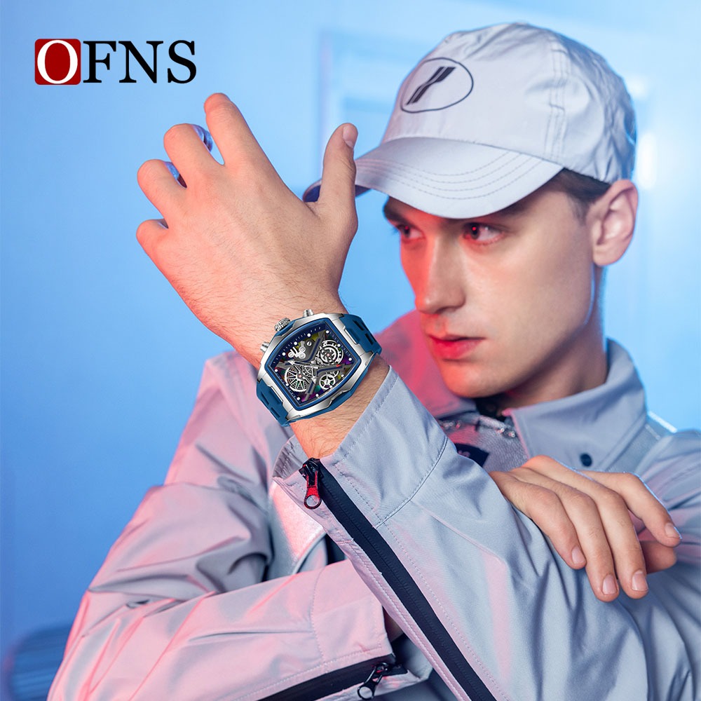 OFNS 1213 Cyberpunk Style Hollow Design นาฬิกาควอทซ์ผู้ชายหลายสีอินเทรนด์นักเรียนกีฬา 5ATM กันน้ําของขวัญในอุดมคติ