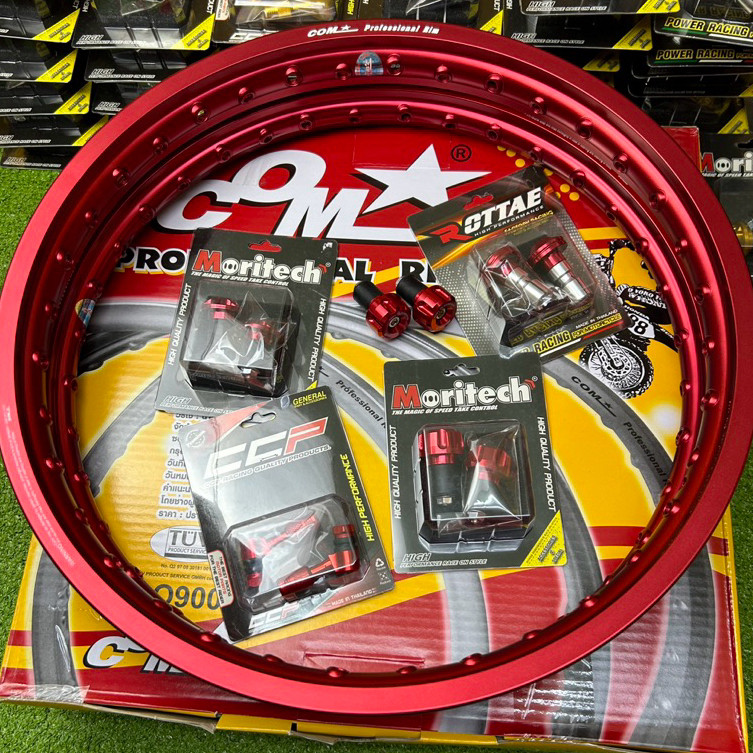 ล้อขอบเรียบ 1.40x17 สีแดง คอมดาวแท้ พร้อมส่ง กล่องเหลือง(1คู่)