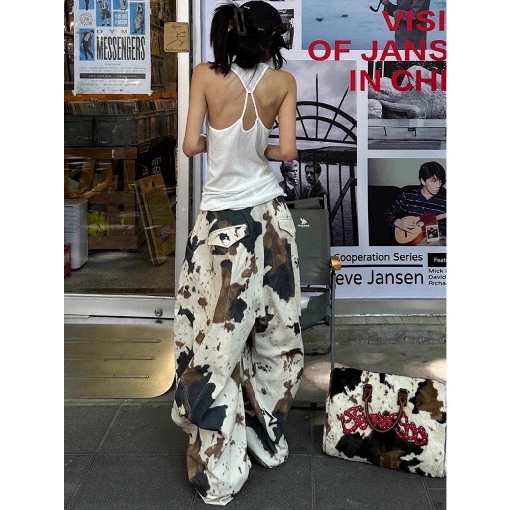 (พร้อมส่ง) Korea cow printed baggy กางเกงยีนส์ลายวัวทรงbaggyรุ่น 61966 TAG FSY 🇰🇷