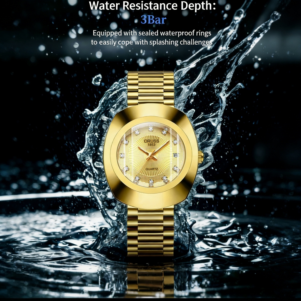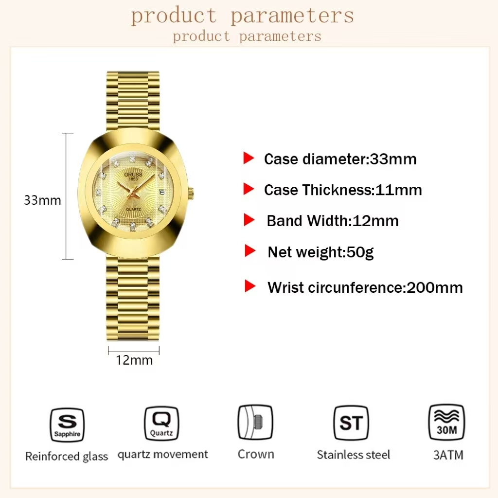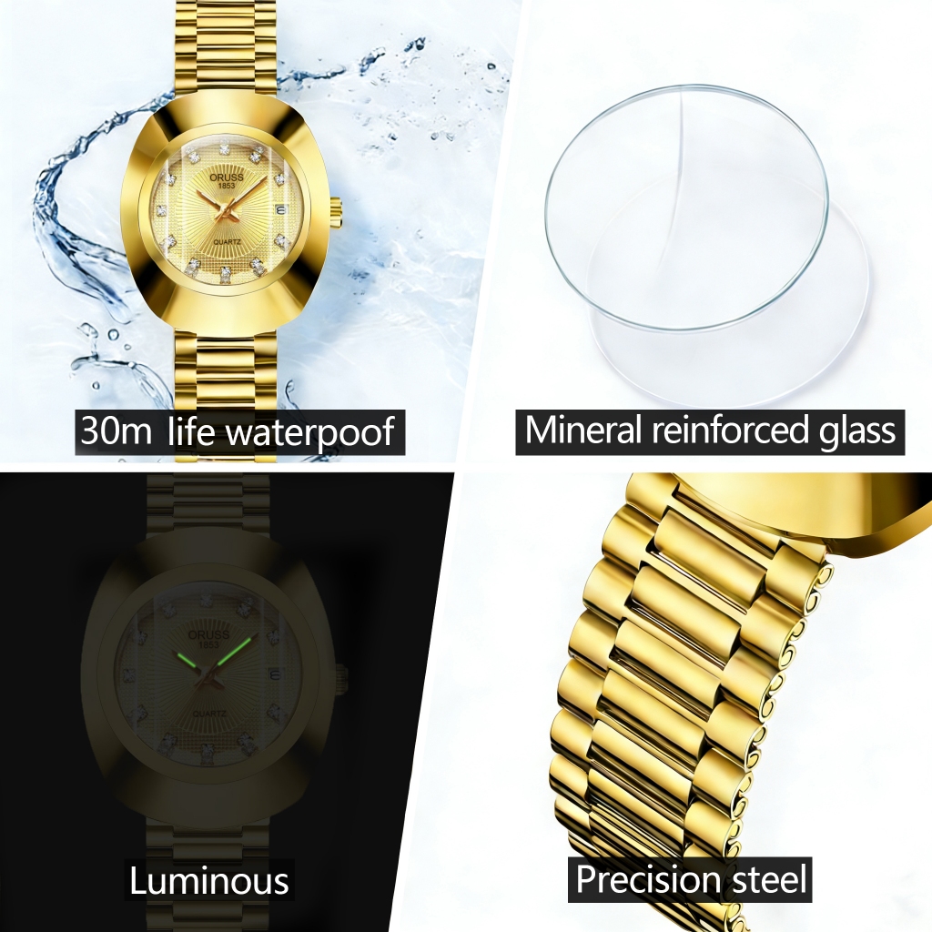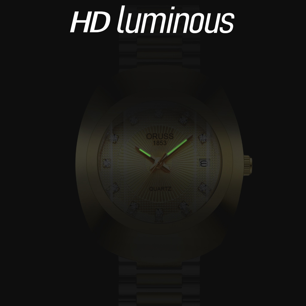ORUSS รัส แบรนด์เดิมหญิงหรูหราสแตนเลสแฟชั่นปฏิทินเรืองแสงนาฬิกากันน้ําเวอร์ชั่นเกาหลีนาฬิกาควอทซ์ที่ดีงาม