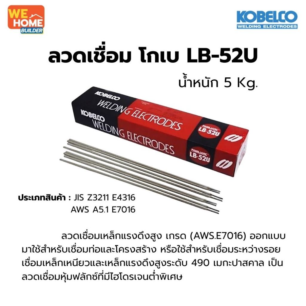 KOBE ลวดเชื่อมโกเบ LB-52U (ห่อ 5 กก.) 2.6mm. 3.2mm. 4.0mm. ลวดเชื่อมเหล็กเหนียว งานโครงสร้าง เชื่อมยัดไส้ คุณภาพสูง