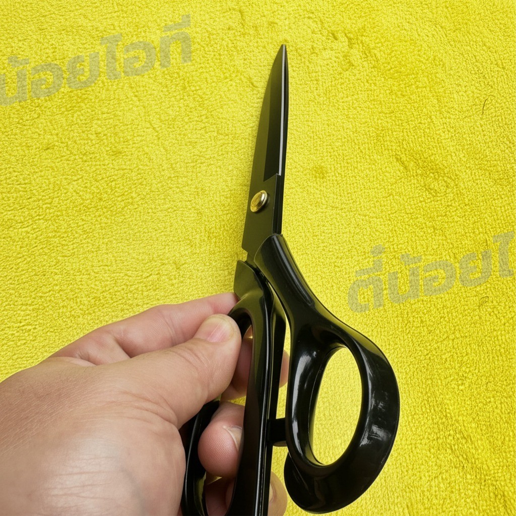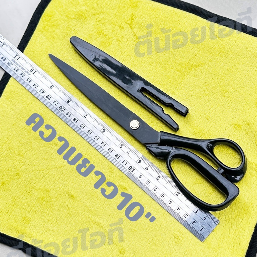 กรรไกรตัดผ้า 10 นิ้ว ใบมีดดำคมกริบ ผ่านการอบความร้อนเพิ่มความแข็งแรง ใช้ตัดผ้า หนัง และงาน DIY ต่างๆ ได้ดีเยี่ยม