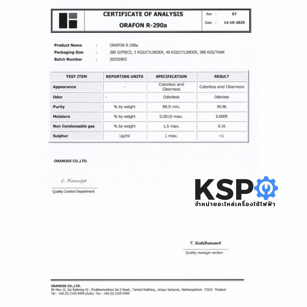 น้ำยาแอร์ ORAFON R600a 6.5 กิโลกรัม ประสิทธิภาพเย็นสูง