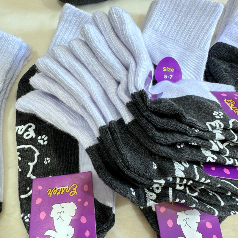 ถุงเท้านักเรียนสีขาว พื้นสีดำ ออกแบบกันลื่น แพ็ค24คู่ แพ็ค12คู่ แพ็ค6คู่ สินค้าผลิตจากโรงงานไทย