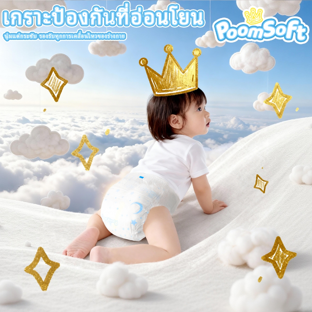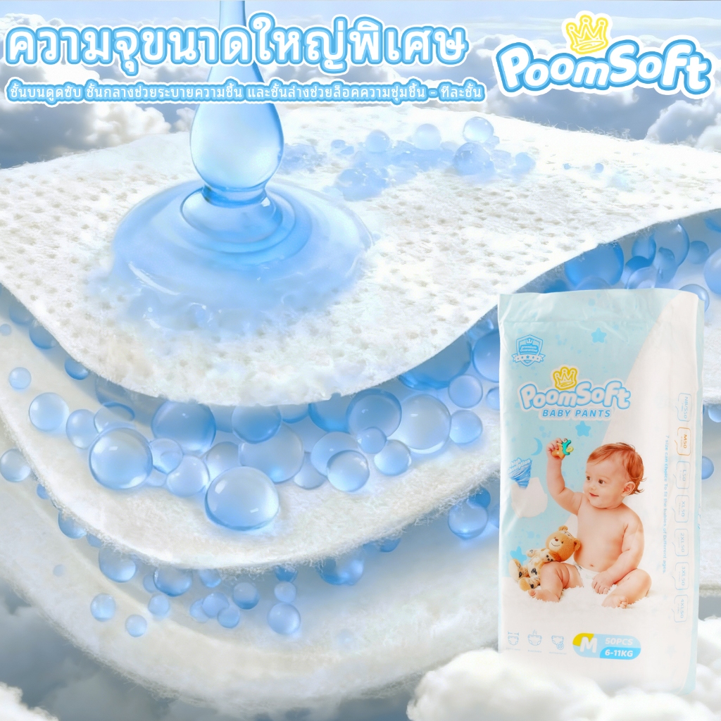 [แพมเพิสเด็ก1 แถม1]Poomsoft 100ชิ้น ผ้าอ้อมเด็ก นุ่ม บางเบา ทิ้งได้ง่าย ผ้าอ้อม กางเกง&เทป Baby Diaper Pants NB-4XL