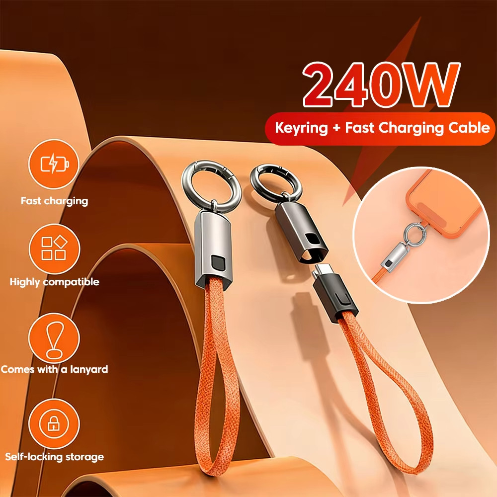 Twitch 0.18M 0.36M PD240W Super Fast Charging Dual Type C สายสั้น Key Chain ข้อมูลสาย 48V 5A สายถักสําหรับสมาร์ทโฟนแท็บเล็ตแล็ปท็อป