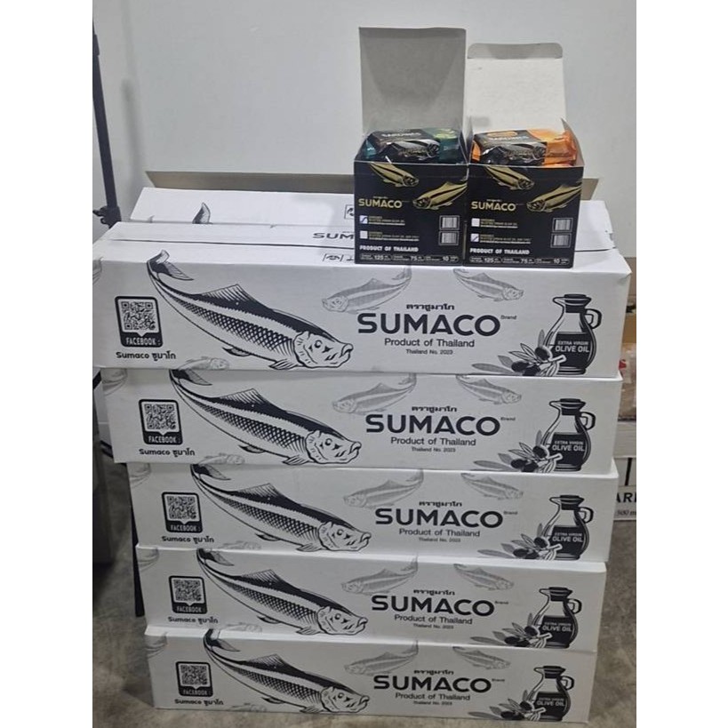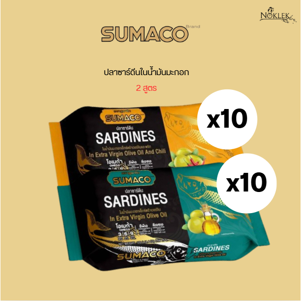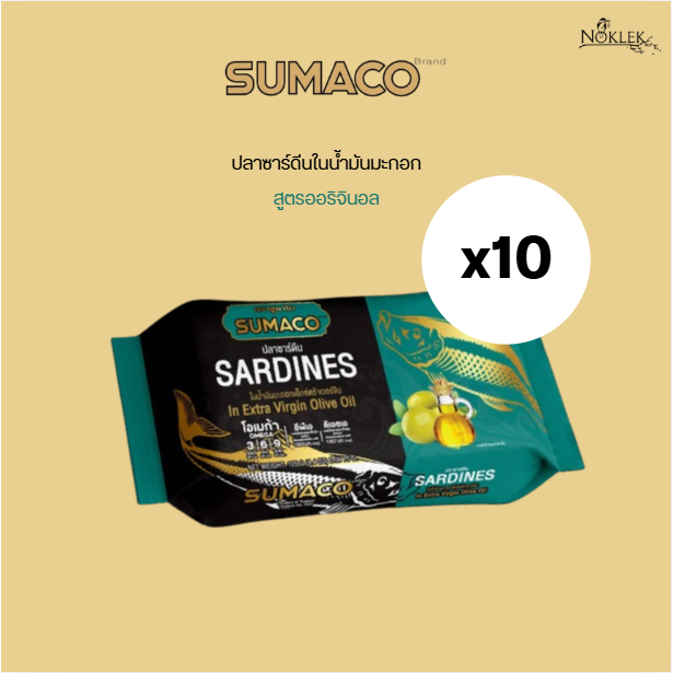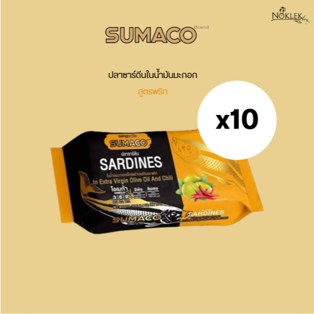 SUMACO ปลาซารืดีนน้ำมันมะกอก แพ็ค 10 ชิ้น มี 2 สูตร ออริจินอล และพริก ขนาด 125 กรัม