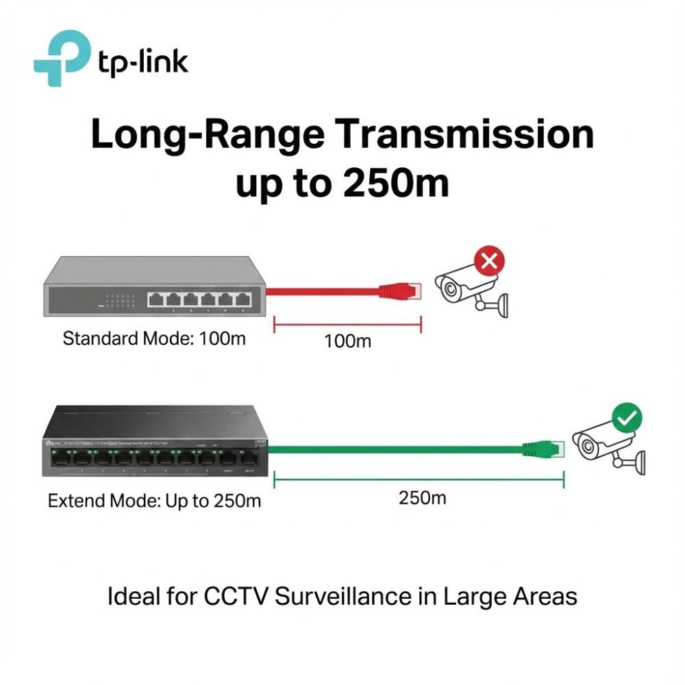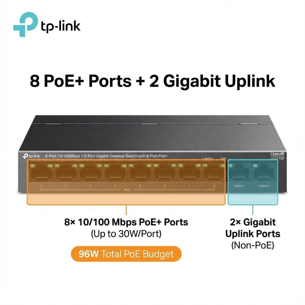 Switch PoE TP-Link LS1210P 8 Port + 2 Gigabit Uplink จ่ายไฟ 96W ไกล 250m