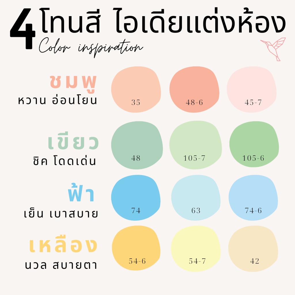 Hummingbird สีทาบ้าน ภายใน (9 ลิตร เฉดฮิต) สีน้ำอะครีลิคชนิดด้าน Pastel loft 2.5 G