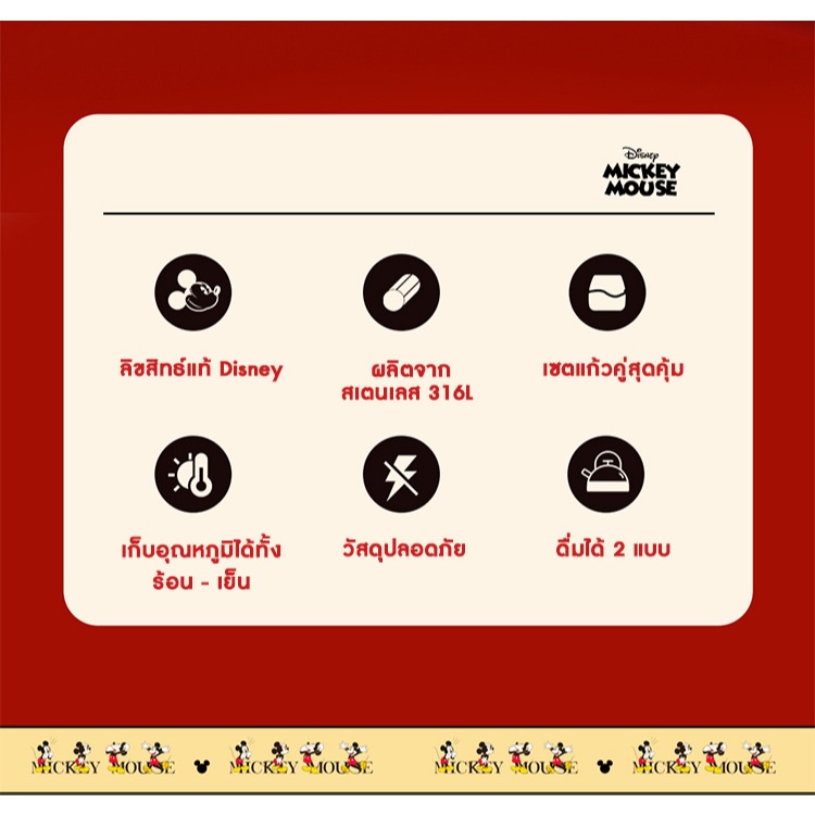 Disney ถ้วยดูดน้ำสแตนเลสเกรดอาหาร 316L ของดิสนีย์ มิกกี้ สำหรับรักษาอุณหภูมิร้อนหรือเย็น แก้วน้ำ แก้วเก็บความร้อน