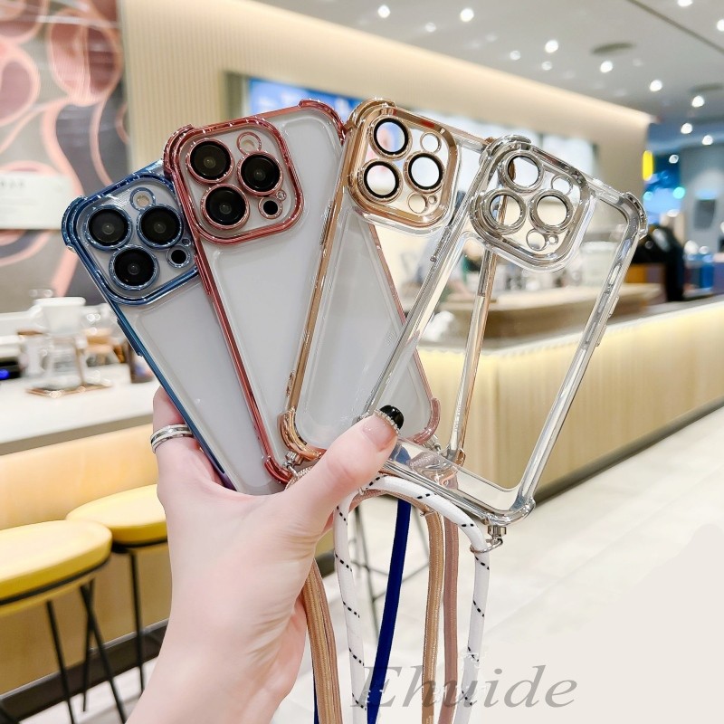 เคสเชือกเส้นเล็กCrossbodyสําหรับXiaomi Mi 15T Redmi 15C 15 หมายเหตุ 14 Pro Plus 14C POCO X7 X6 สายซิลิโคนชุบนุ่มฝาครอบใส