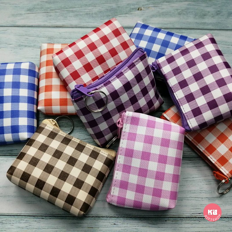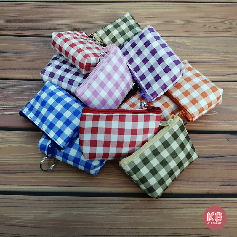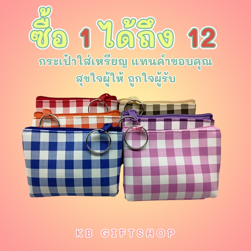KB กระเป๋าใส่เหรียญ กระเป๋าสตางค์ ขายส่ง ยกโหล ของชำร่วย ของขวัญ แทนคำขอบคุณ คละสี 12ใบ ขนาด 3x4 นิ้ว พิมพ์ลาย สก๊อต