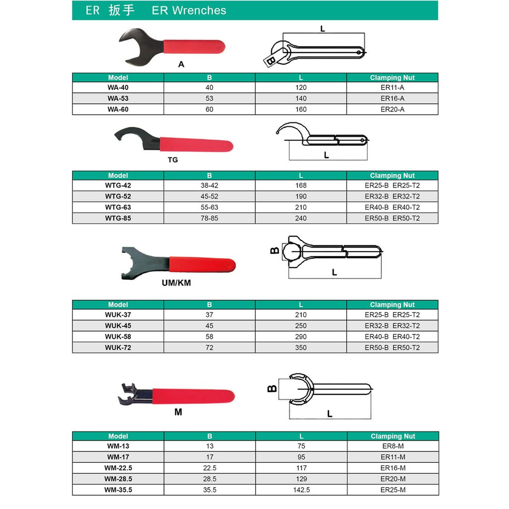 WRENCH - ER - C - APU // ประแจล็อค ด้ามขัน มี14ขนาด