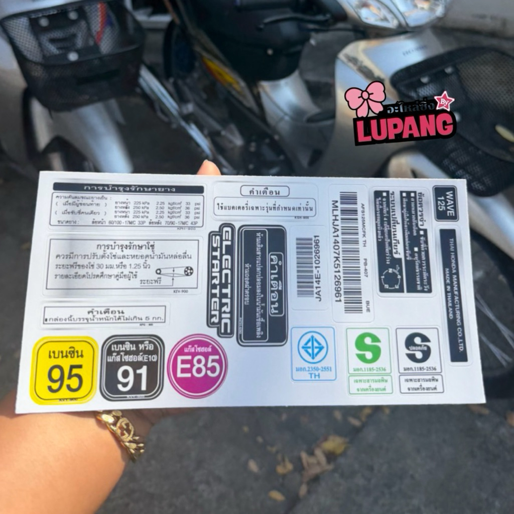 สติ๊กเกอร์คำเตือน Wave ทุกรุ่น ครบชุด16ชิ้น สติ๊กเกอร์คำเตือนเวฟ น้ำหมึกญี่ปุ่นเเท้ ติดทนนาน สีสวย