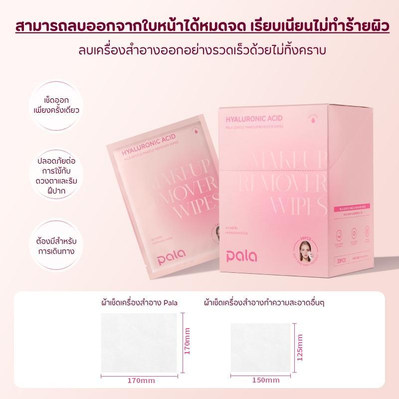 Pala คลีนซิ่งแผ่น Hyaluronic Acid Gentle Makeup Remover Wipes อ่อนโยน ไม่ระคายเคืองผิว แบรนด์ไทย มีอ.ย.