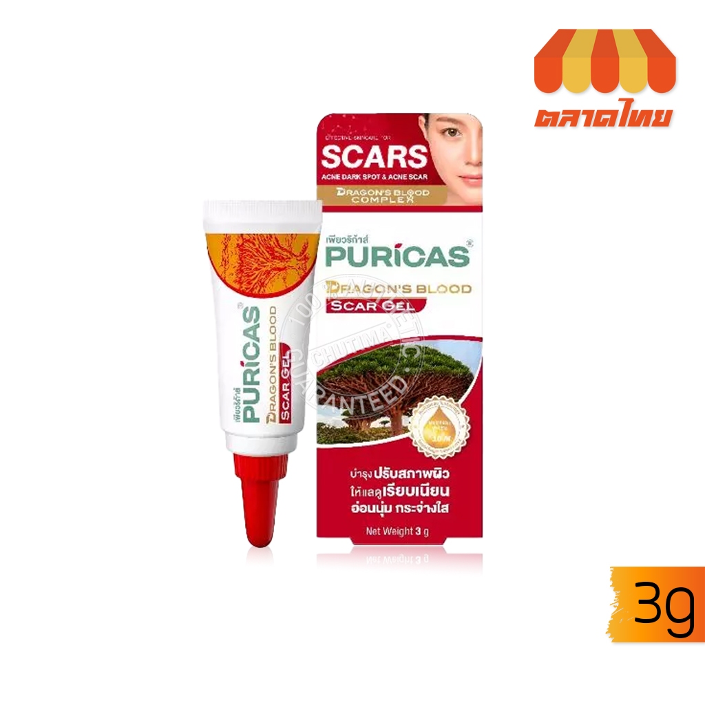 เจลรักษาแผลเป็น เพียวริก้าส์ ดราก้อนส์ บลัด สการ์ เจล Puricas Dragon's Blood Scar Gel 3/8/9/20 g.