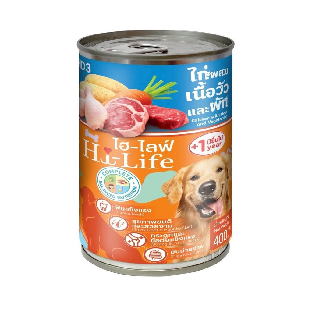 (12กระป๋อง)Hi-Life ไฮไลฟ์ อาหารเปียกสุนัขกระป๋อง สำหรับสูตร Complete & Balanced 400 กรัม(ไม่ได้ห่อบับเบิ้ล แปะกันกระแทก)