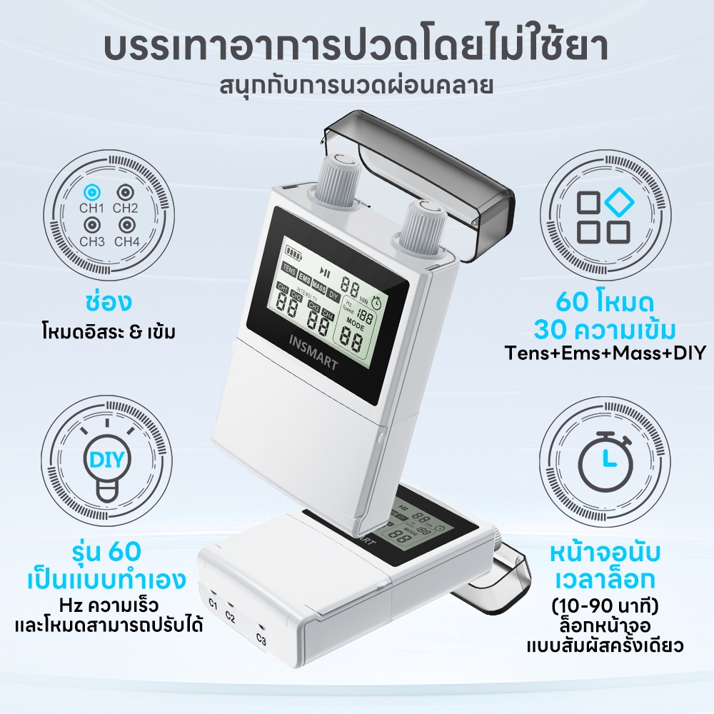INSMART เครื่องกระตุ้นกล้ามเนื้อไฟฟ้าTENS/EMSไฟฟ้ากายภาพบําบัด60 โหมดอุปกรณ์นวดไฟฟ้า บรรเทาอาการปวด