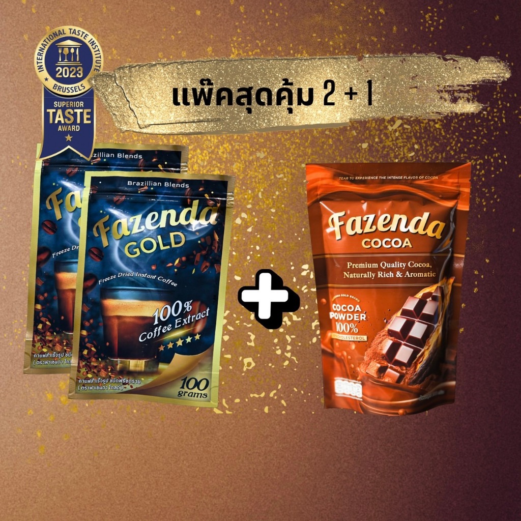 [แพ๊คสุดคุ้ม2+1] กาแฟ 2 ถุง + โกโก้ 1 ถุง Fazenda Gold + Fazenda Cocoa