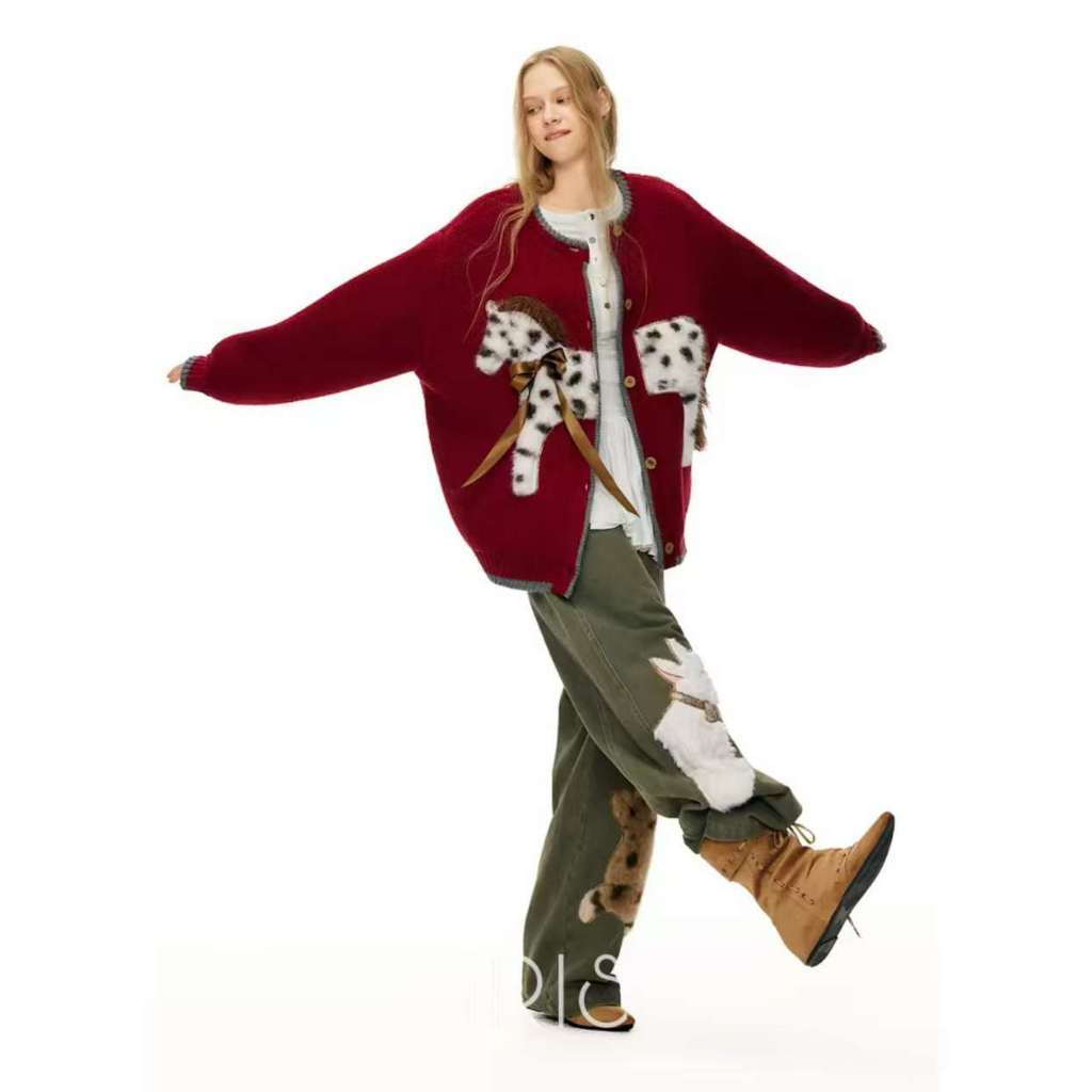 สินค้าลิขสิทธิ์แท้」IRIS SPRING |Lucky Pony Cardigan & pantsเสื้อคลุมไหมพรมตรุษจีนปีม้า แต่งม้าขนฟูสุดน่ารัก เหมาะกับอากา